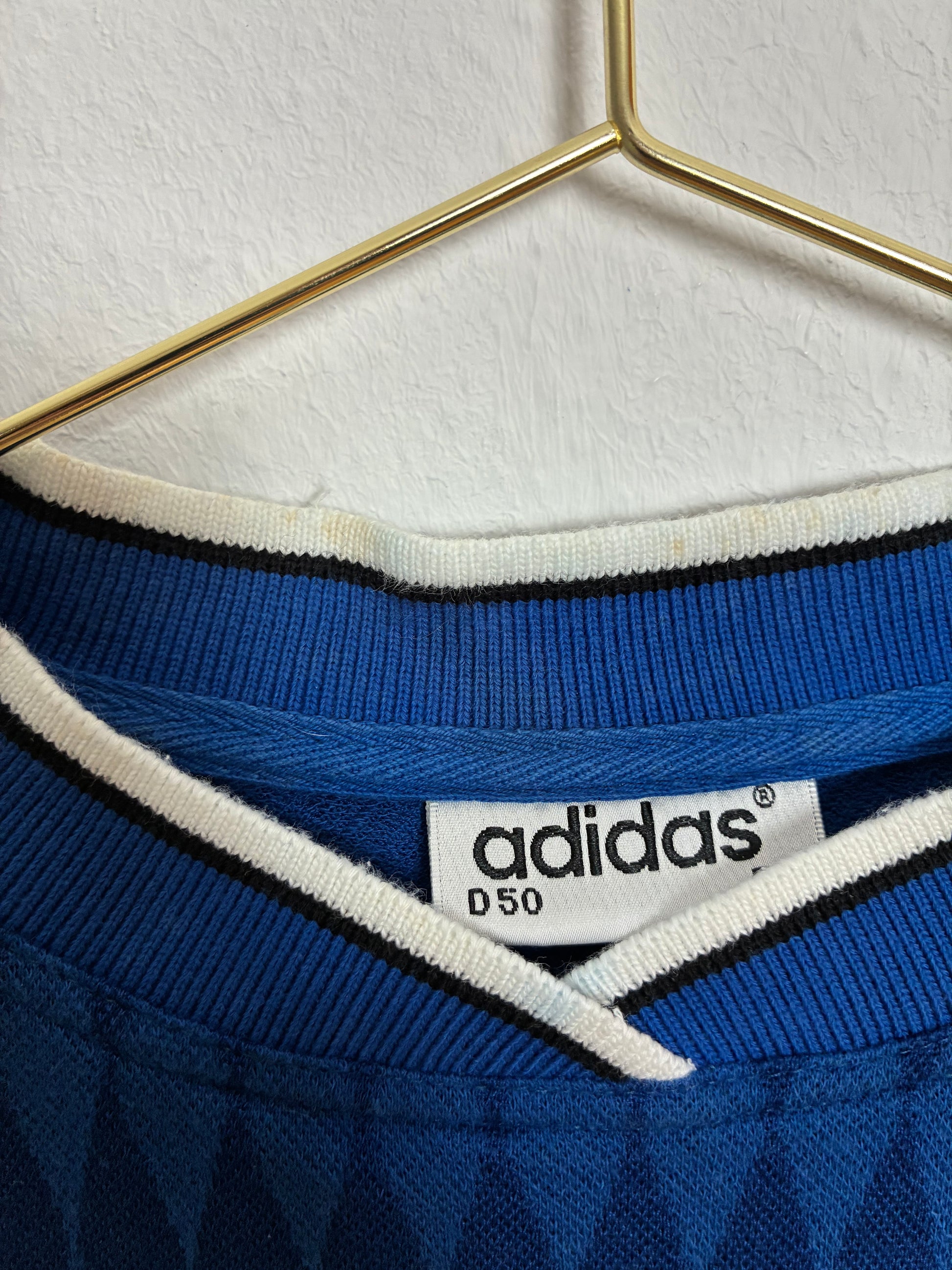 Vintage Adidas T-Shirt des FC Bayern München aus den Jahren 1995 und 1996. Dieses Shirt schreit nach dem "FC Hollywood". Zum damaligen Kader zählten Spieler wie Oliver Kahn, Lothar Matthäus, Mehmet Scholl und Jürgen Klinsmann.