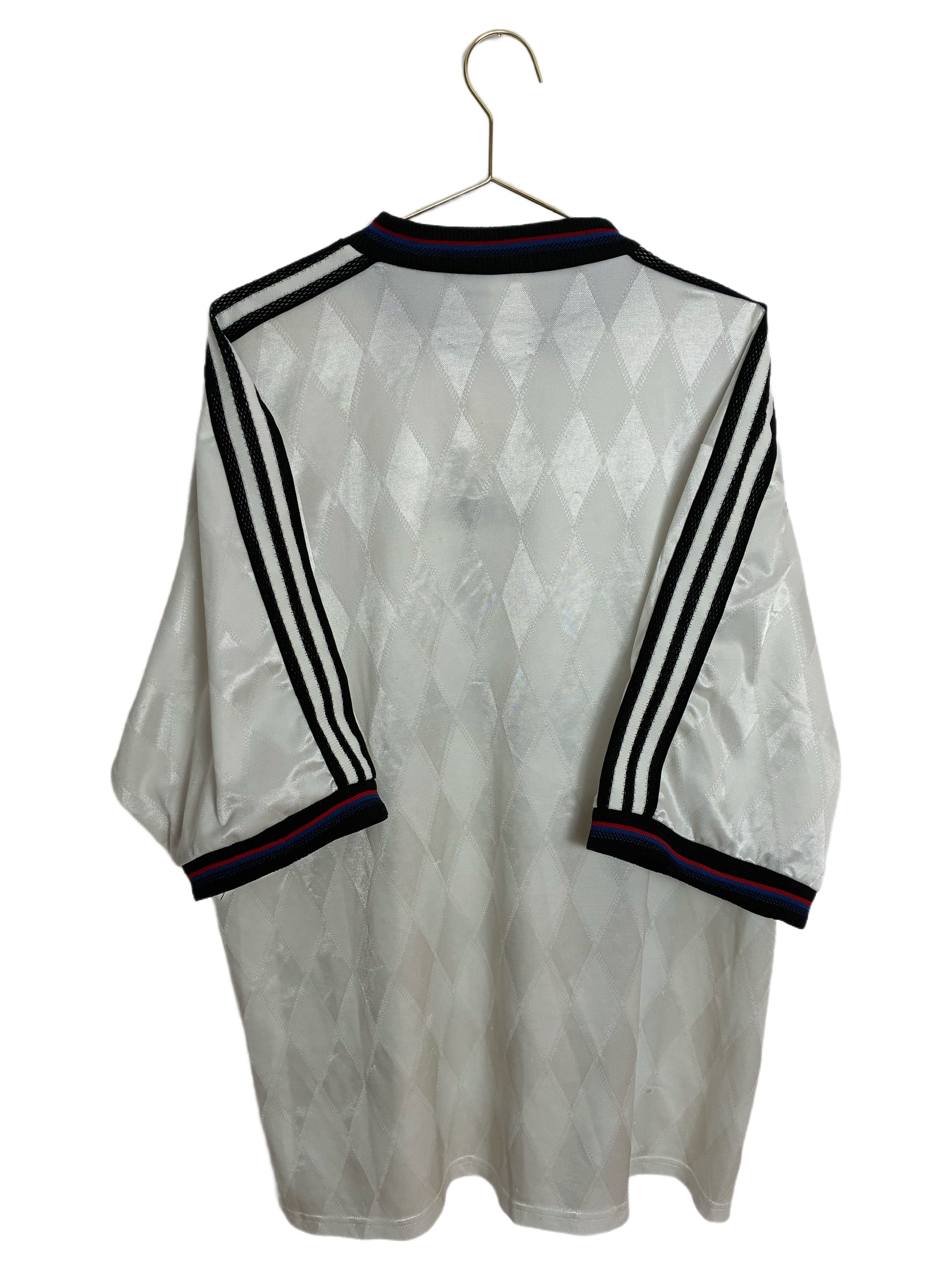 Vintage Adidas T-Shirt des FC Bayern München aus den Jahren 1996, 1997 und 1998. Zum damaligen Kader zählten Spieler wie Jürgen Klinsmann, Lothar Matthäus und Oliver Kahn.