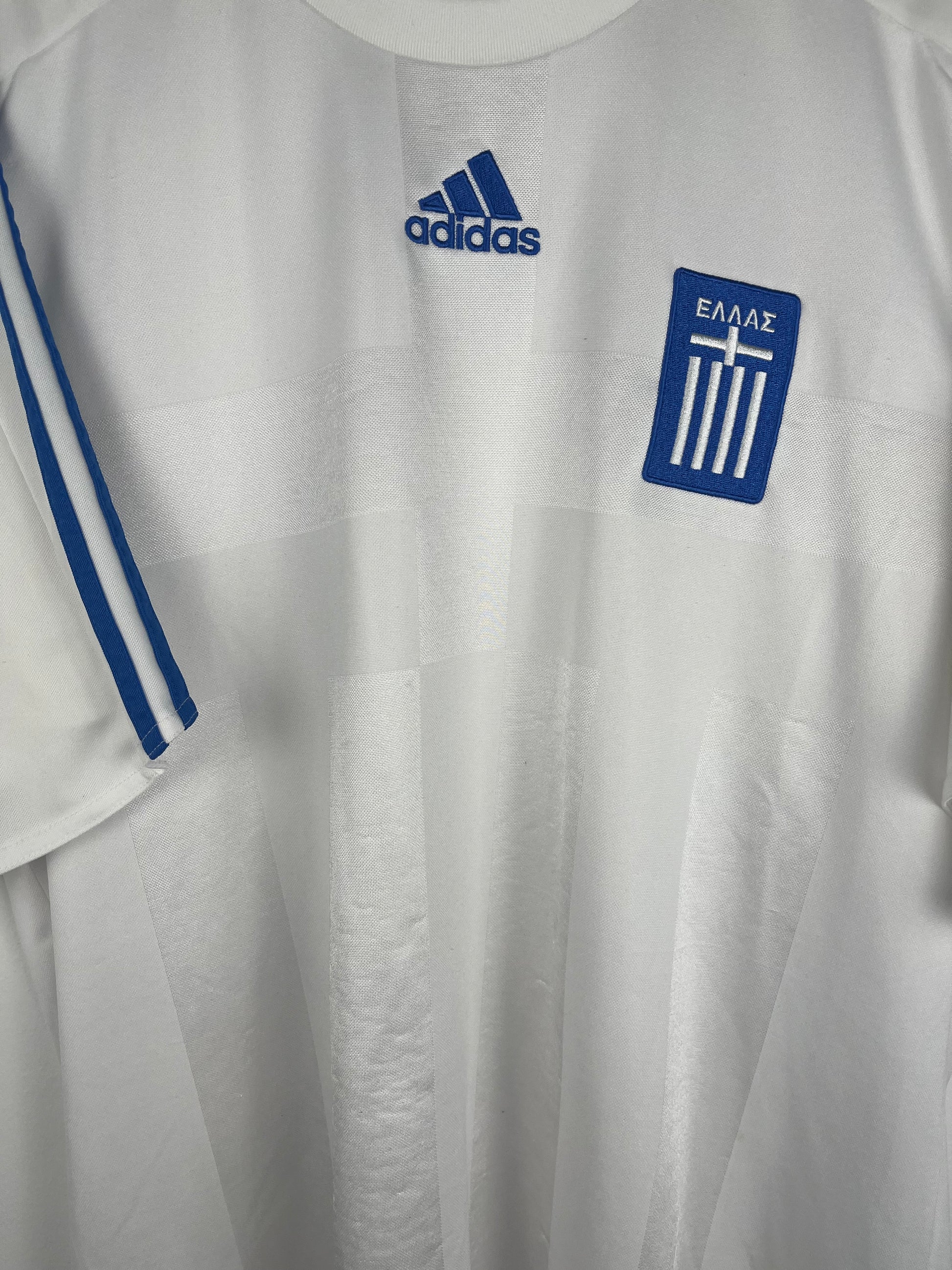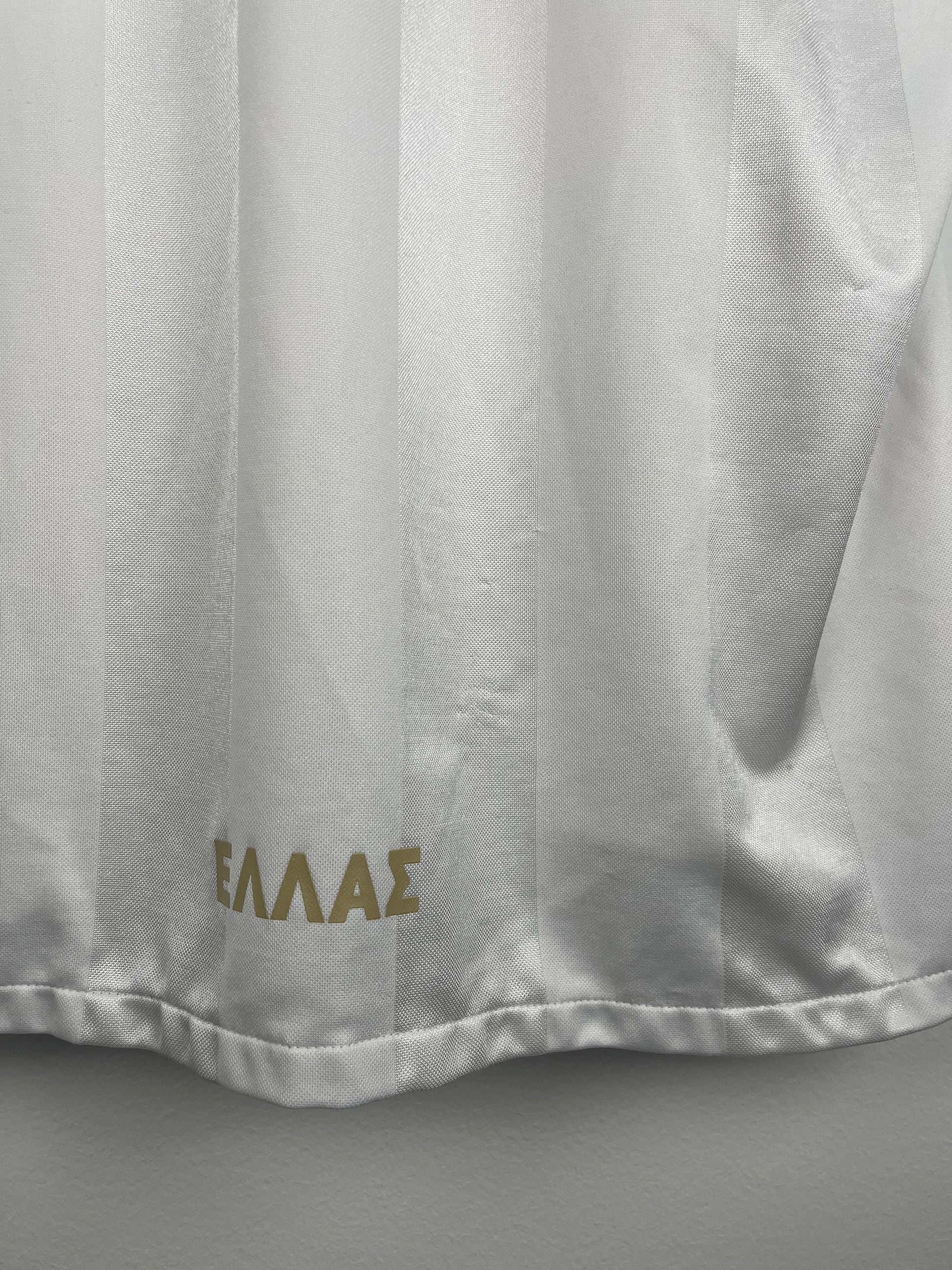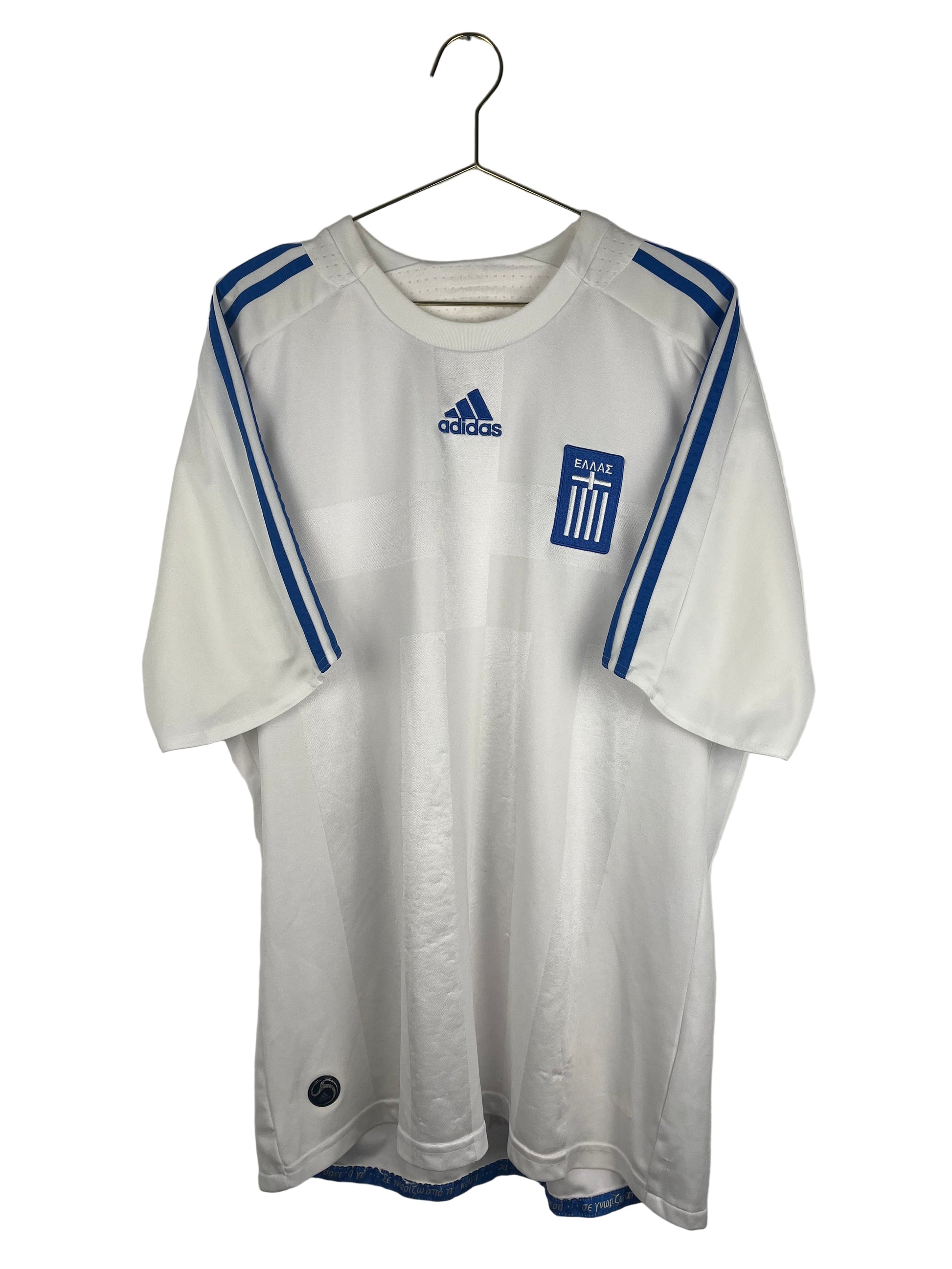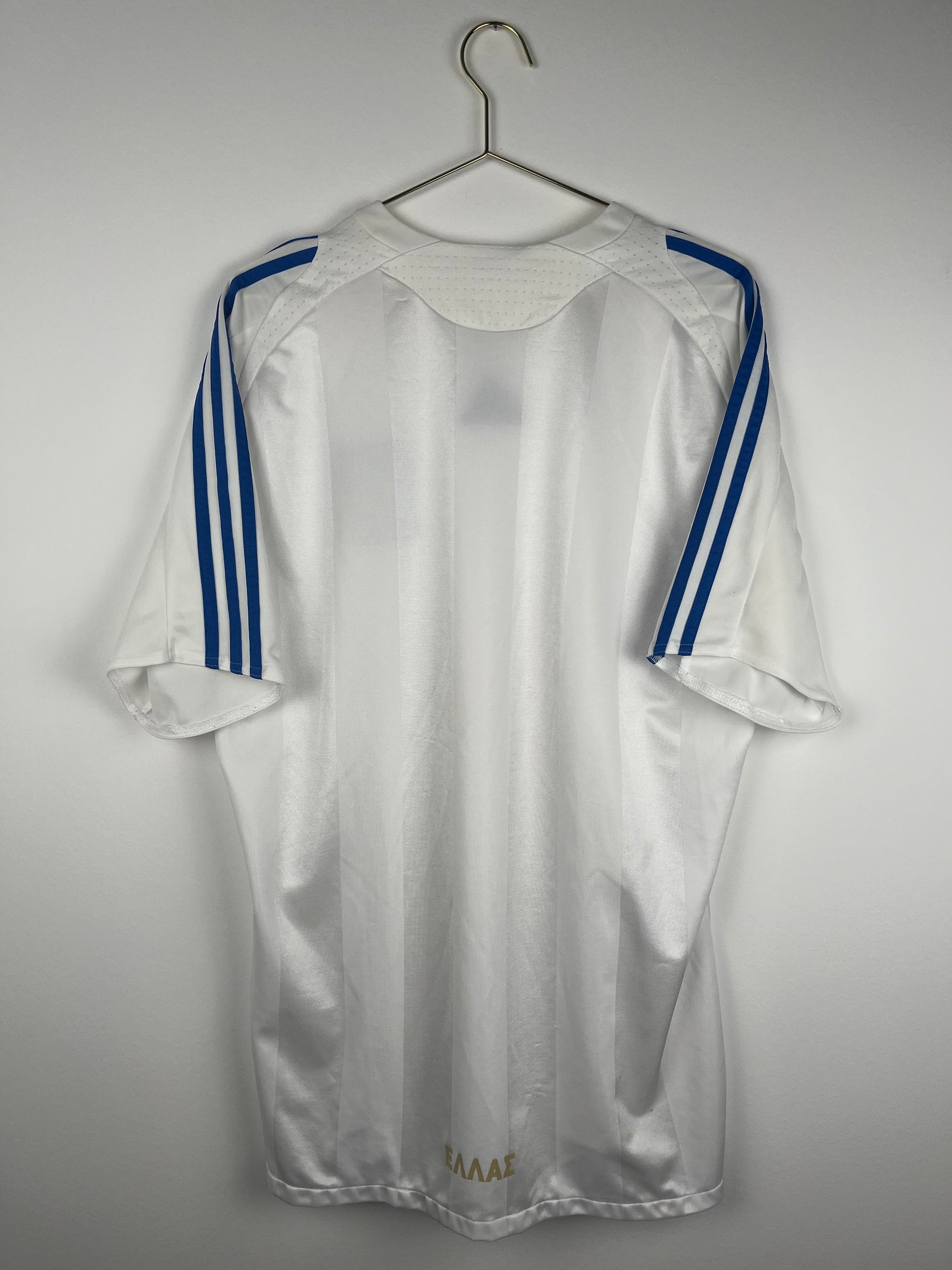 Das Trikot wurde bei der EM 2008 in Österreich und der Schweiz getragen. Die Mannschaft von Otto Rehagel reiste damals als Titelverteidiger an. "Rehakles" konnte jedoch kein weiteres Wunder vollbringen und schaffte es mit den Griechen nicht über die Vorrunde hinaus. Zum damaligen Kader gehörten Spieler wie Georgios Karagounis, Georgios Samaras, Angelos Charisteas , Theofanis Gekas und Ioannis Amanatidis.