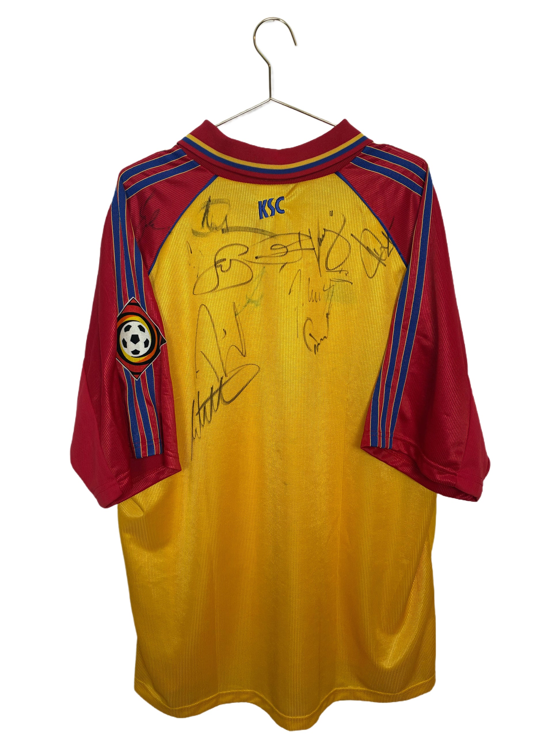 Vintage Adidas-Trikot des Karlsruher Sport-Club aus der Saison 1998/99. Zum damaligen Kader zählten Spieler wie Guido Buchwald (Legende des großen Rivalen aus dem Schwabenland) und Simon Jentzsch.
