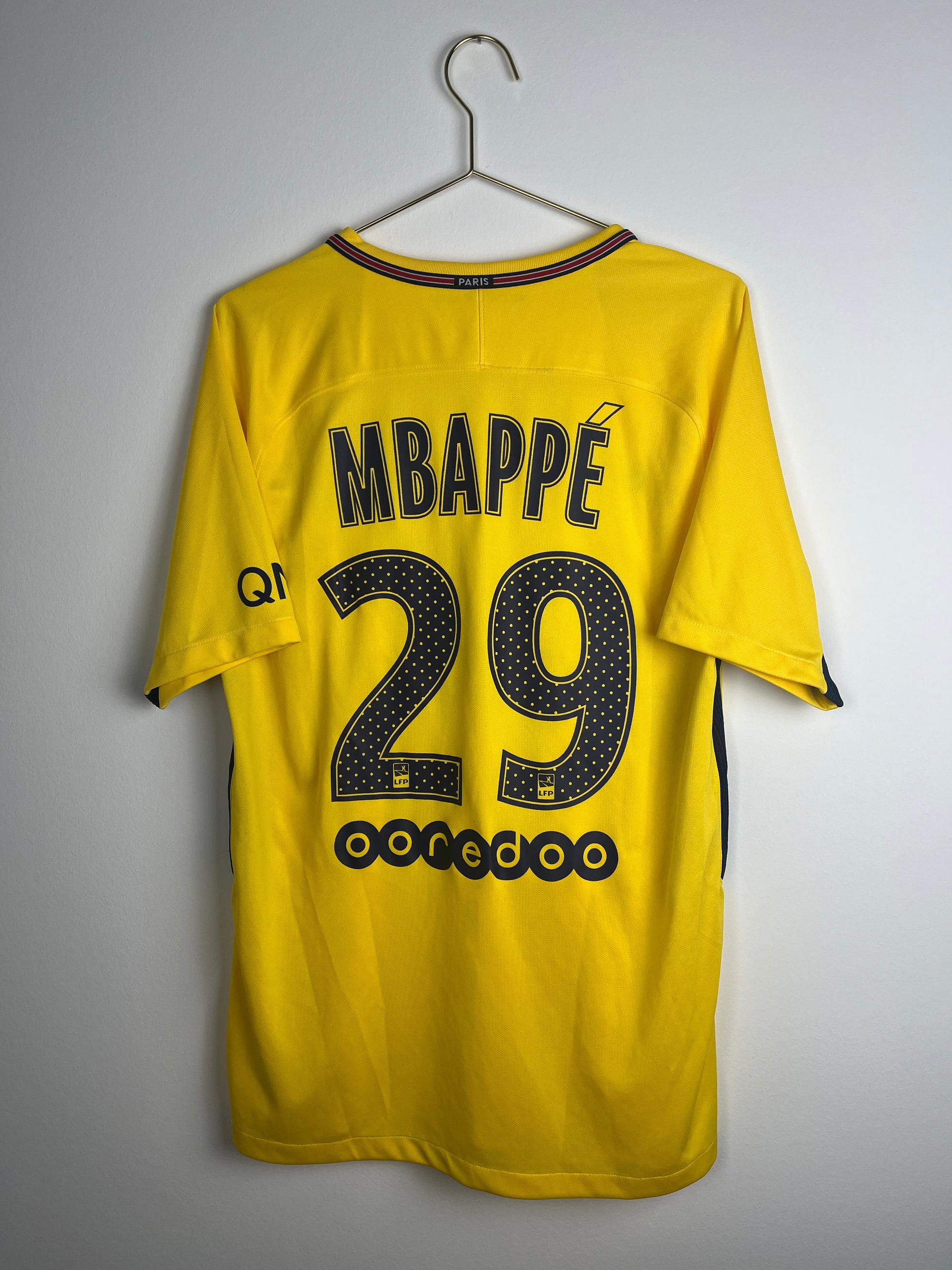 Das Trikot stammt aus der ersten Saison von Wunder-Stürmer Kylian Mbappe bei PSG. Da man zu dieser Saison bereits Neymar für eine Ablösesumme von 222 Millionen verpflichtete, wurde Mbappe zunächst ausgeliehen. Nach der Saison wurde die Kaufoption des Franzosen für 160 Millionen gezogen. Das gelbe Auswärtstrikot trug Mbappe in seinem Debut für Paris bei einem 1:5 Auswärtssieg in Metz. Insgesamt erzielte er in seiner Debut-Saison 21 Tore und 16 Vorlagen für den Hauptstadtklub. Es war die einzige Saison in der Mbappe mit der Rückennummer "29" für Paris auflief.
