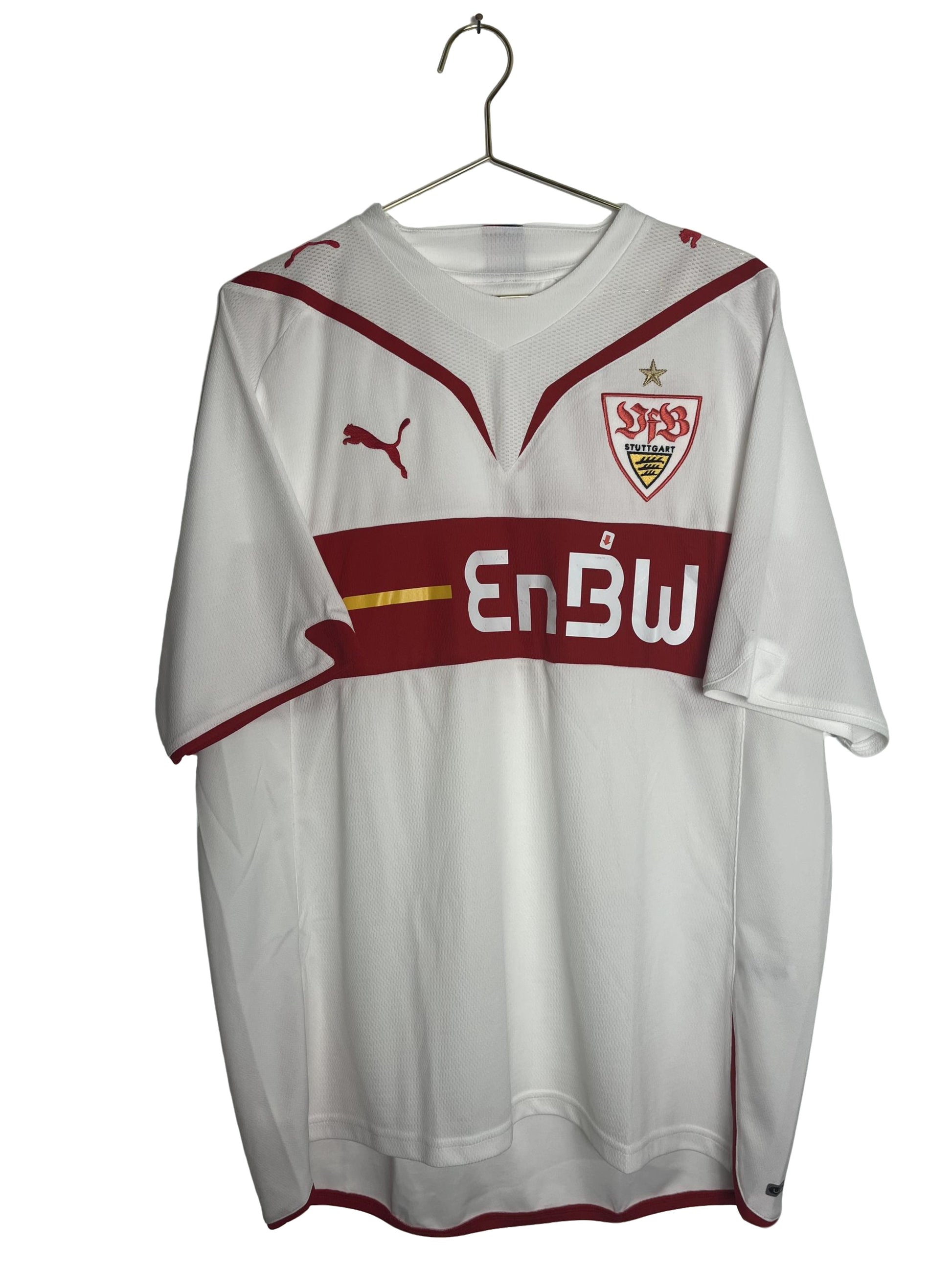 Vintage Trikot des VfB Stuttgart aus der Saison 2009/2010. Die Saison 2009/2010 war ohne Zweifel von großen Auf- und Abs für alle Fans des Brustrings geprägt. Magische Europapokalnächte gegen Vereine wie die Glasgow Rangers oder dem FC Barcelona wechselten sich mit enttäuschende Auftritten wie der Achtelfinalniederlage im DFB-Pokal gegen Greuther Fürth ab. Auch die Gesamtbetrachtung der Saison lässt sich in Licht und Schatten unterteilen. Während man in der Hinrunde noch fast auf einem Abstiegsrang stand, folgte nach dem Trainerwechsel von Marcus Babbel zu Christian Gross eine erfolgreiche Aufholjagd, die am Ende der Spielzeit in einem guten 6. Platz mündete.